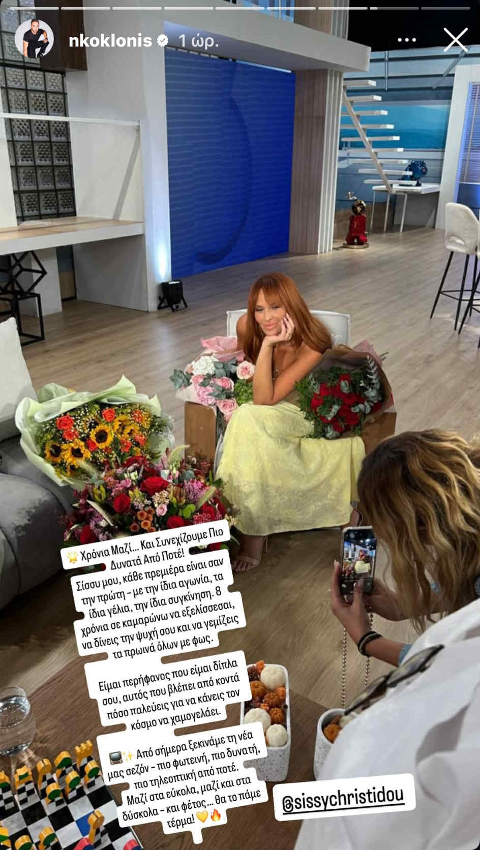Ο Νίκος Κοκλώνης, αφού της έστειλε ένα κασπό με εντυπωσιακά λουλούδια στο πλατό, θέλησε να εκφράσει δημόσια και τα συναισθήματά του.